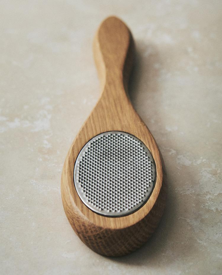 足部去角质器,橡木结构和加长手柄。