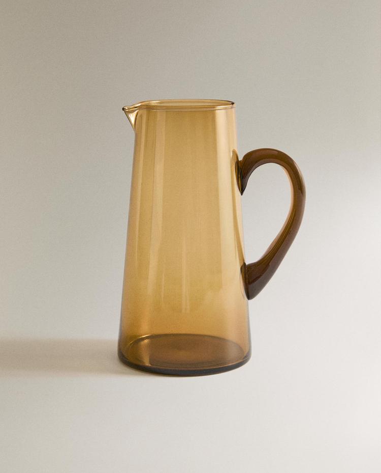 玻璃材质水壶,搭配把手。表面气泡效果设计,增添视觉质感。
