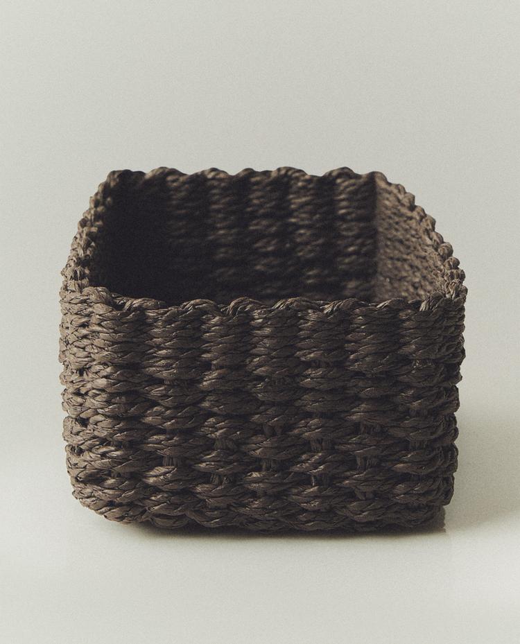 矩形收纳篮,采用纸材制成,带棕色编织纹理设计。