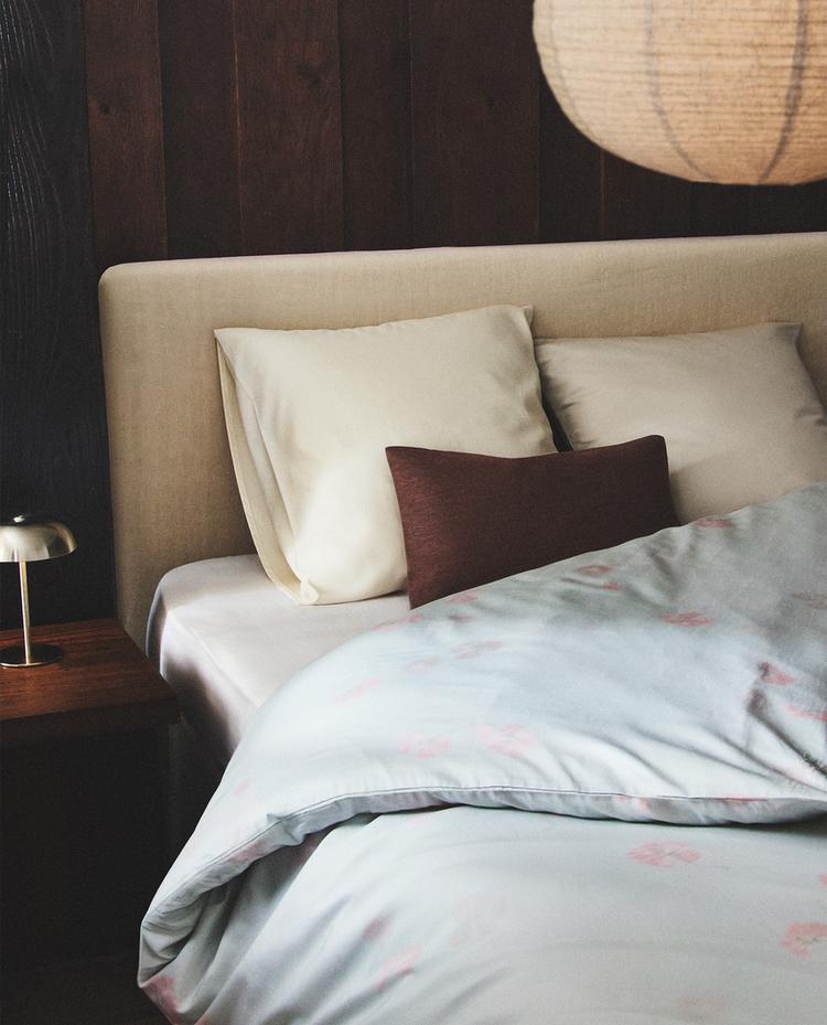 300纱支密度的缎纹棉被套和枕套套装,搭配花卉设计。