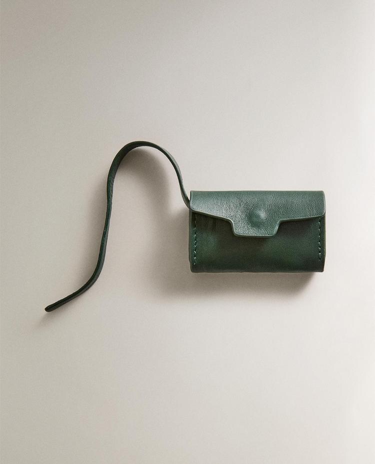 LEATHER PET BAG DISPENSER ¥ 219GREEN|7325/149/500Leather pet bag dispenser with snap-button fastening. Compact design with inner compartment for attaching the bag roll and leather strap to easily attach it to a lead or bag.HeightWidthDepth4.50 cm7 cm1 cm¥ 219 Coming Soon Measurement guideShare item