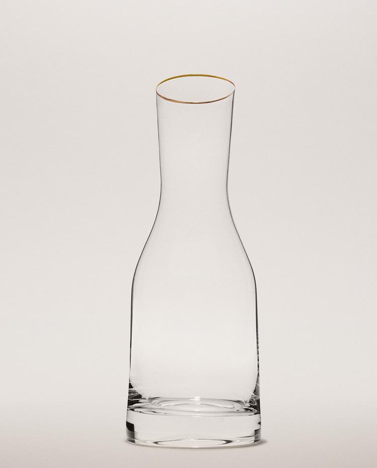 Bohemia Crystal glass bottle or decanter with a gold rim.