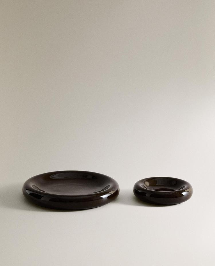 Decorative ceramic trays with a shiny finish.