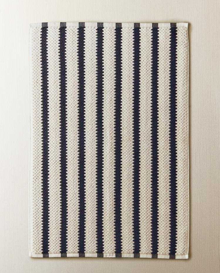Cotton bath mat with a geometric jacquard texture.