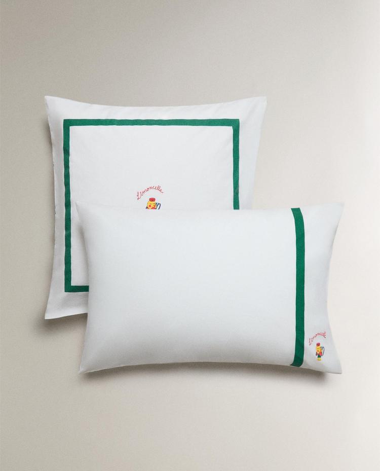 Kids’ duvet cover in 250 thread count cotton with a reversible design and Limoncella x The Animals Observatory motifs. Embroidered logo detail.