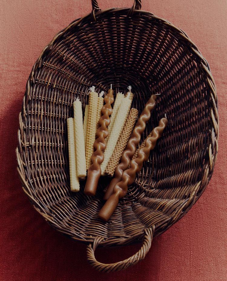 Decorative wax candles with a long, continuous wavy design, creating a voluminous twisted silhouette. Straight base for stable support and visible central wick. The pack includes 2 candles.
