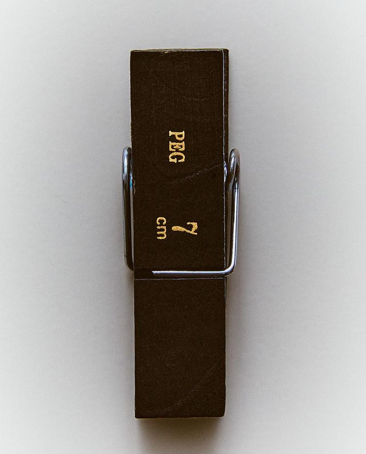 Metal clothes pegs marked ‘7 cm’ on the front of each one.