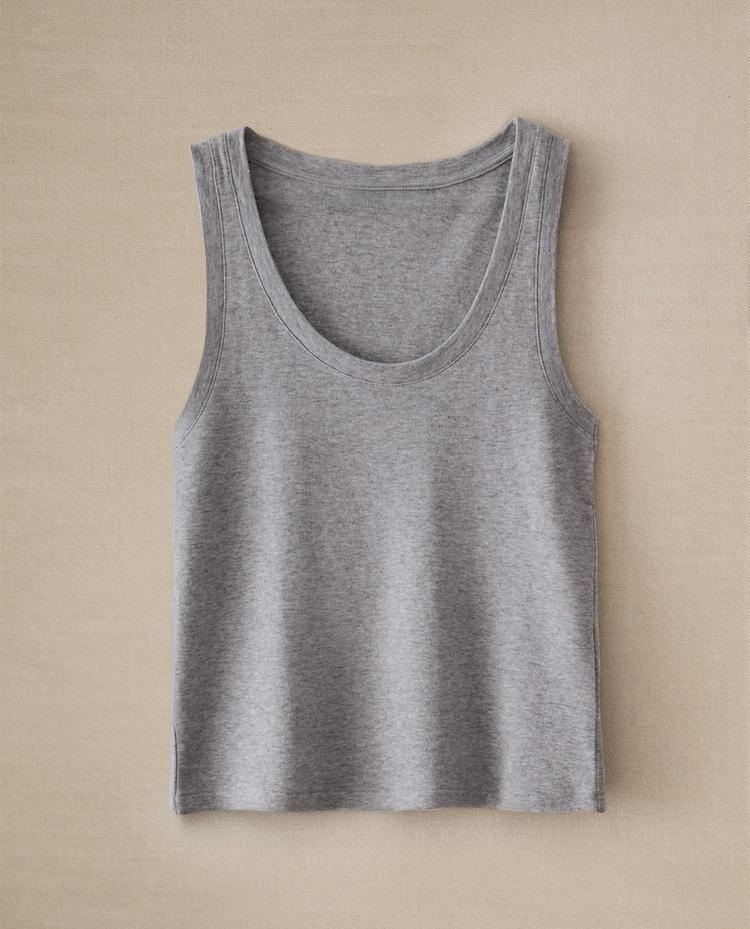 Cotton tank top with a plain design. One side is light grey and the other is in dark grey.