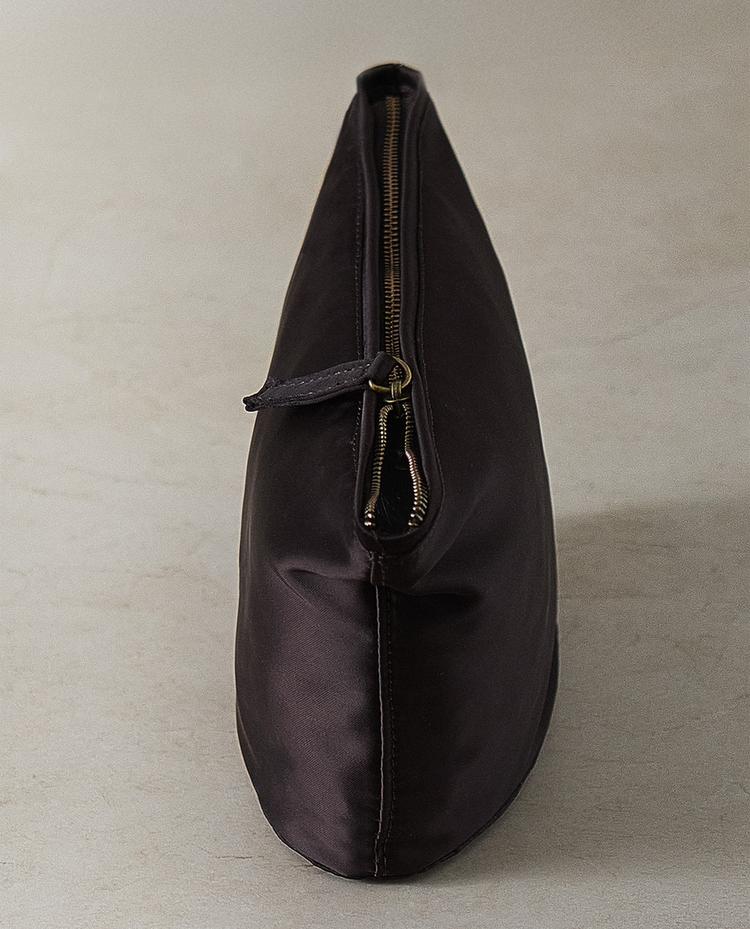 Mid-sized satin wash bag. Zip closure.