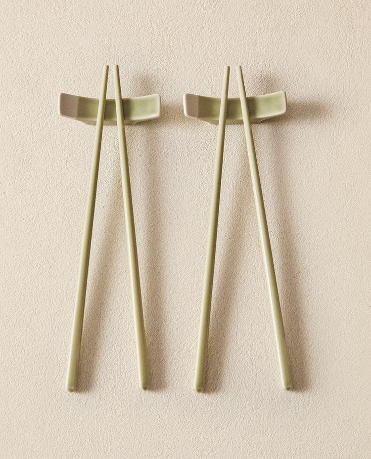 SET OF CERAMIC CHOPSTICKS AND HOLDER (SET OF 2)