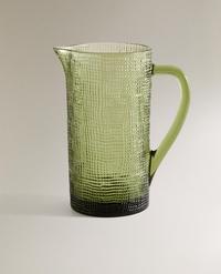 RAISED DESIGN GLASS JUG ¥ 269GREEN|6267/213/500Transparent glass jug featuring an embossed texture in the shape of criss-cross lines, giving it a mesh or fine fabric look. Featuring a tall cylindrical design, a subtle pouring spout and a sturdy handle made of the same material.Capacity: 1000 mlHeightWidthDepth20 cm16.50 cm10.80 cm¥ 269Enter quantity of units to purchase Quantity updated to 1 units Measurement guideAdd ¥ 269