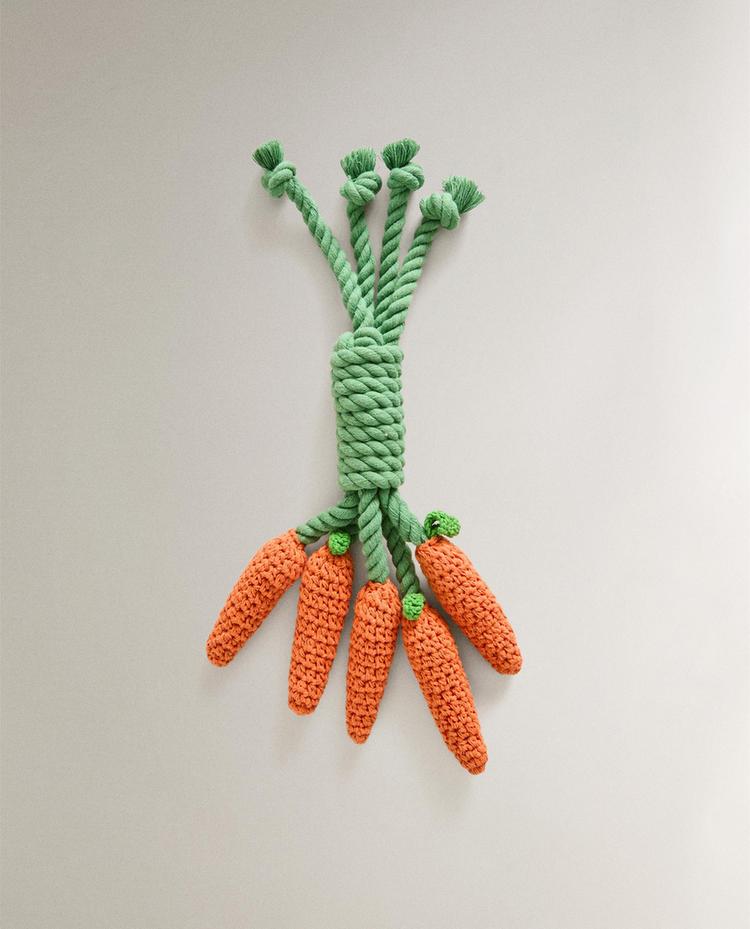 CARROT BUNCH PET TOY ¥ 159ORANGE|1381/149/615Cotton woven rope pet toy in the shape of a bunch of carrots.HeightWidthDepth35 cm4 cm4 cm¥ 159Enter quantity of units to purchase Quantity updated to 1 units Add ¥ 159