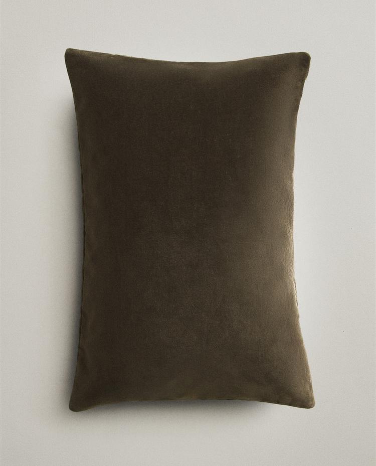 Cushion cover with a plain design and velvet finish.