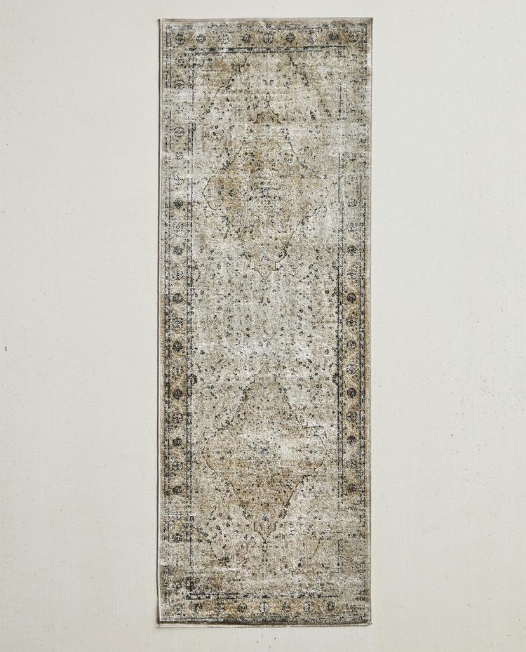 Viscose rug with a vintage design in light tones. Available in runner rug size.