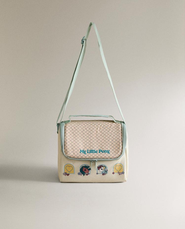 儿童便携式保温袋,配有可调节手柄,撞色边缘和瓷砖印花翻盖,饰有 ©2026 Hasbro. My Little Pony. 角色图案。