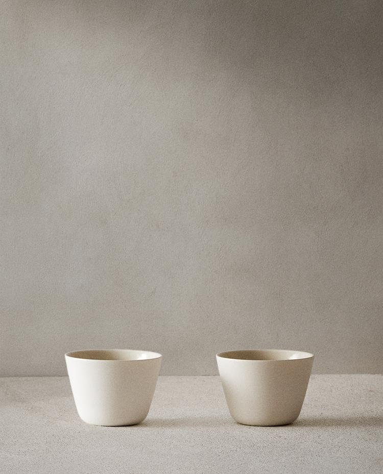 纯粹的形状、简单的线条和中性色调,以及对比鲜明的哑光和亮光饰面打造而成的餐具系列,致敬极简主义风格,同时也带来趣味与灵动。堆叠并组合不同形状的单品以打造独特的环境。这款餐具是 Serax 专门为 Zara Home 设计的。